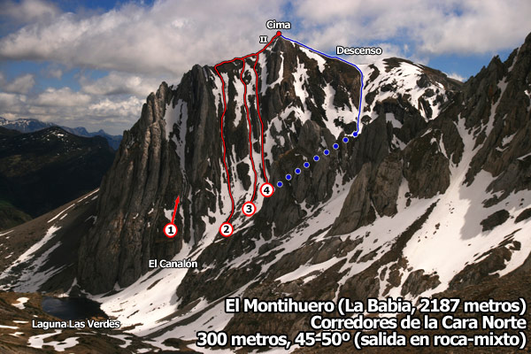 orientación norte) encontramos el canalón que remontaremos hasta que dejemos
